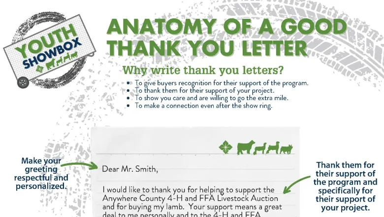 Earlier this year, we shared an Anatomy of a Good Buyers Letter video and infographic to help 4-H and FFA students write a good buyers letter for potential buyers. We're following that up this week with an Anatomy of a Good Thank You. Thank you letters don't take long to write, and they do not have to be long, but they are oh so important. Buyers, and people in general, appreciate when you take time to show your appreciation for their support. A thank you letter is a simple way to do that...and a good thank you letter have a few important parts.